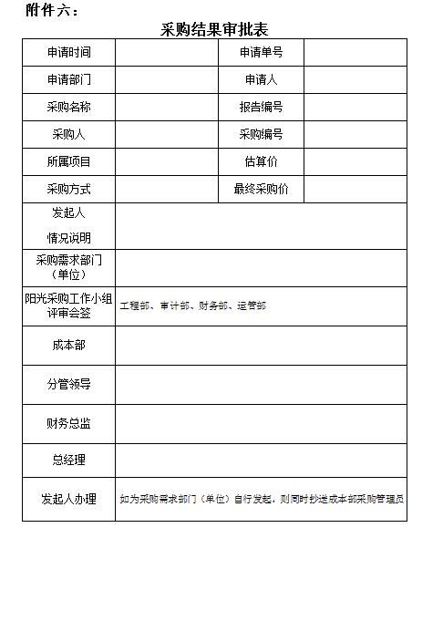 7.采購(gòu)評(píng)審小組形成采購(gòu)報(bào)告,由成本部或需求部門(單位)根據(jù)需要發(fā)起《采購(gòu)結(jié)果審批表》,按照評(píng)審結(jié)果確定成交供應(yīng)商;
