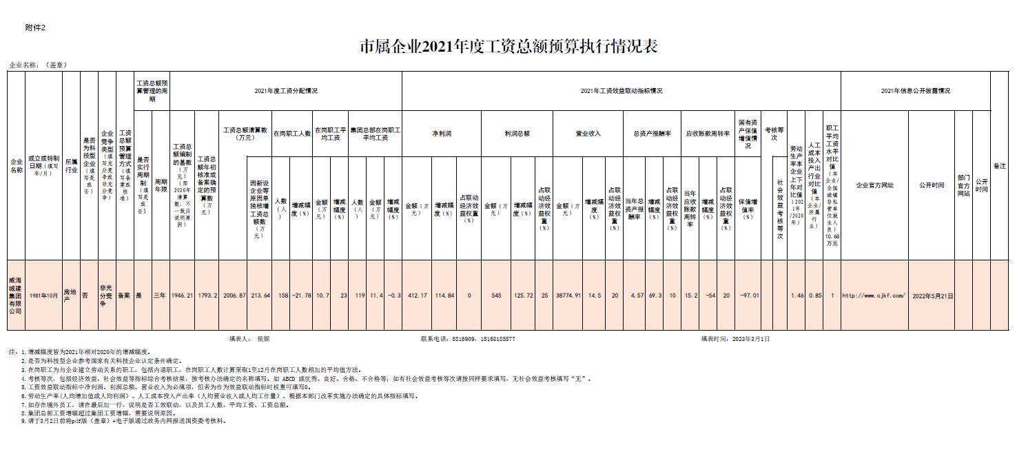 市屬企業(yè)2021年度工資總額預算執(zhí)行情況表
