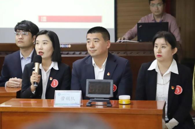 “蓬勃飛躍,勇爭第一!”“紅色物業(yè),為民服務(wù)!”“不忘初心,砥礪前行!”“開拓市場,有我最強(qiáng)!”在一聲聲洪亮的口號聲中,比賽拉開了序幕。此次黨史知識競賽內(nèi)容新穎、形式創(chuàng)新,競賽全程采取隨機(jī)抽題的方式,分別設(shè)置了必答題、搶答題、風(fēng)險題三個競賽環(huán)節(jié)。在第一關(guān)的必答題環(huán)節(jié),每隊輪流派出三名選手作答,大家應(yīng)答如流、自信滿滿,黨史知識儲備可見一斑,比賽氛圍熱烈。