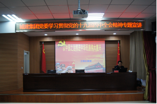 為深入學(xué)習(xí)宣傳黨的十九屆四中全會精神,12月12日,威海城建集團黨委理論學(xué)習(xí)中心組對十九屆四中全會精神展開集中學(xué)習(xí),邀請市委十九屆四中全會精神宣講團成員、中共威海市委黨校王炳壯教授,以《以中國之治推動民族復(fù)興》為題,為全體黨員和干部職工對十九屆四中全會精神進(jìn)行了詳細(xì)講解。集團黨委副書記孫曉東同志主持會議并提出具體要求。