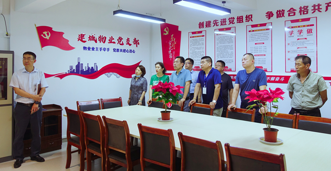 話黨建、共交流、拓思路、謀發(fā)展。為進(jìn)一步加強黨建互動,積極交流先進(jìn)經(jīng)驗,切實提高集團黨建工作水平,7月21日,集團黨委副書記孫曉東同志、黨委委員呂文秀同志帶隊,組織集團黨務(wù)工作者來到建城物業(yè)公司,學(xué)習(xí)觀摩紅色物業(yè)黨建陣地。