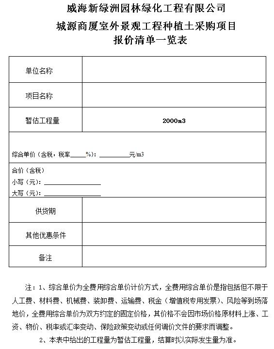 (5)采購范圍:城源商廈室外景觀工程種植土的采購、運輸、裝卸等相關工作,具體內容詳見采購文件。