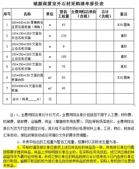 (5)采購范圍:城源商廈室外石材的采購、運輸、裝卸等相關工作,具體內(nèi)容詳見采購文件。