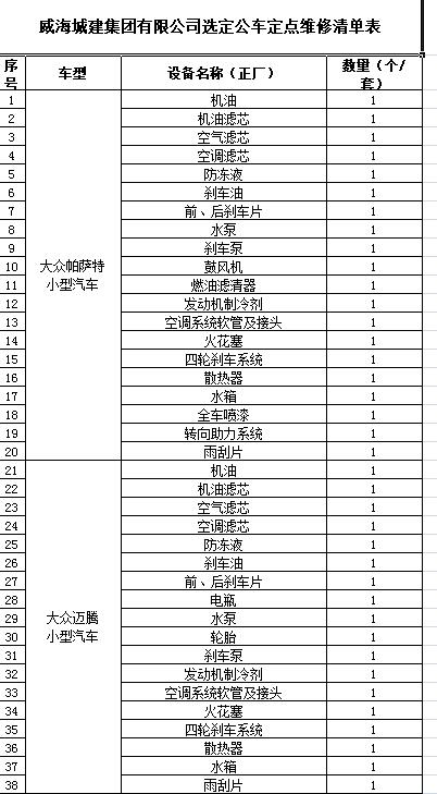 (4)采購內容:威海城建集團10輛公車定點維修保養(yǎng)等服務內容,采購清單詳見附件。